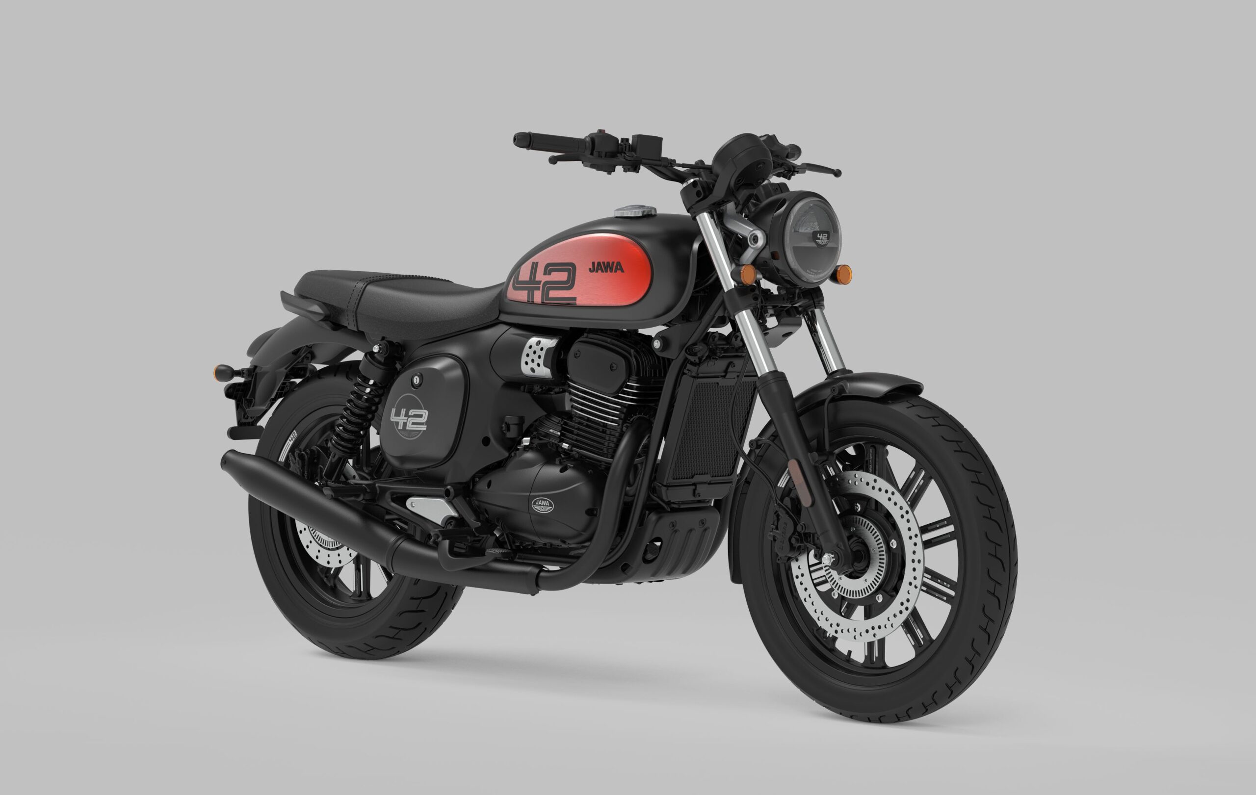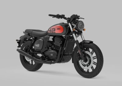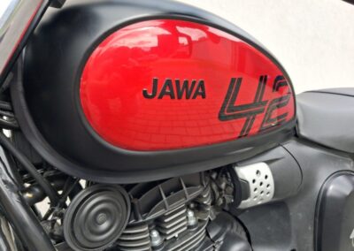 A similar innovation is now brought by the JAWA 350 CL 42. The new generation of the 42 series, like the base 350 CL model, is built on the same technical foundation but features a newer and more powerful engine, combined with a sportier and lighter design. Once again, it boasts a separate headlight and an eccentrically positioned speedometer. New design elements include a reshaped fuel tank, raised exhaust dampers, and cast wheels that complete the sporty look. There’s nothing left to do but experience it firsthand!