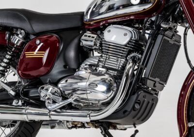 Stronger, more robust, yet still elegant and stylish — that’s the JAWA 350 CL. Its mission is to enhance the beloved and commercially successful JAWA 300 CL. What are the main differences? As the name suggests, it features a new-generation engine with a larger displacement of 334 cc, the same as in the JAWA 350 CL Pérák and JAWA 350 CL Bobber. But the engine isn’t the only upgrade. A redesigned rear swingarm with reinforced dual springs improves handling, especially on winding country roads at higher speeds compared to the previous JAWA 300 CL model. The motorcycle also has a slightly increased ground clearance, addressing a limitation some riders experienced with the 300 CL generation.