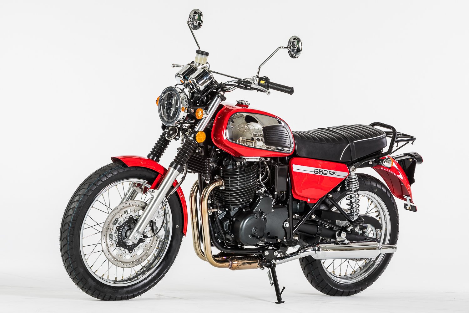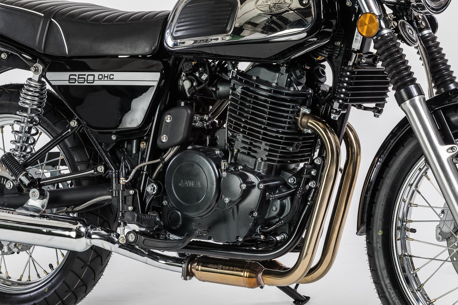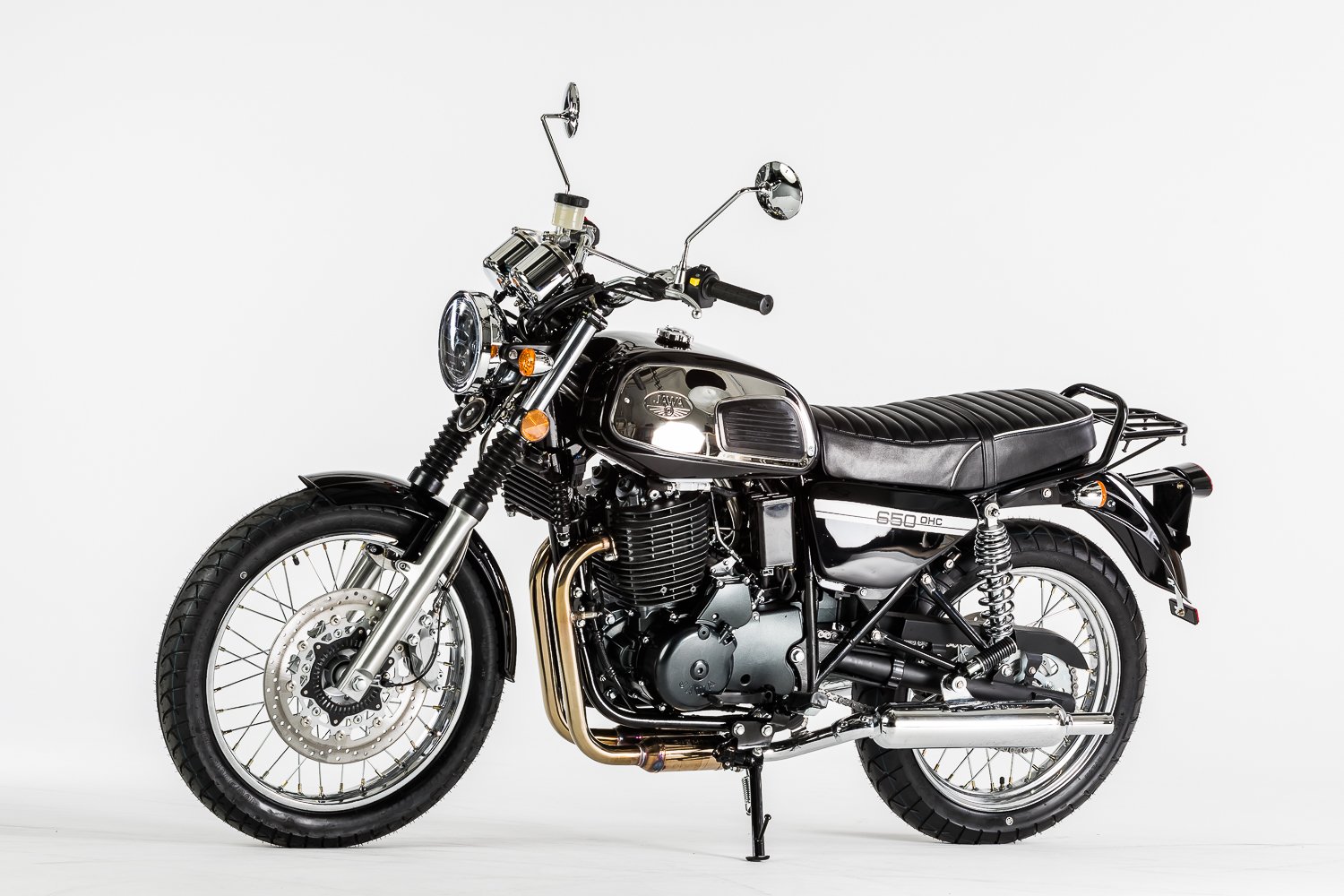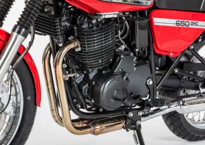 Similar to the JAWA 350 OHC series, the new model features a more powerful engine and brakes as well as strengthened frame. Both models, however, continue the traditional design of the JAWA motorcycles from the 1970s and thus proudly claim the legacy of the traditional JAWA motorcycle brand. The motorcycle is again built primarily from steel components, as has been the case throughout the history of our brand. Thanks to accessories such as drop guards or luggage racks, the JAWA 650 OHC can become not only your agile means of transport, but also a reliable partner for longer journeys.