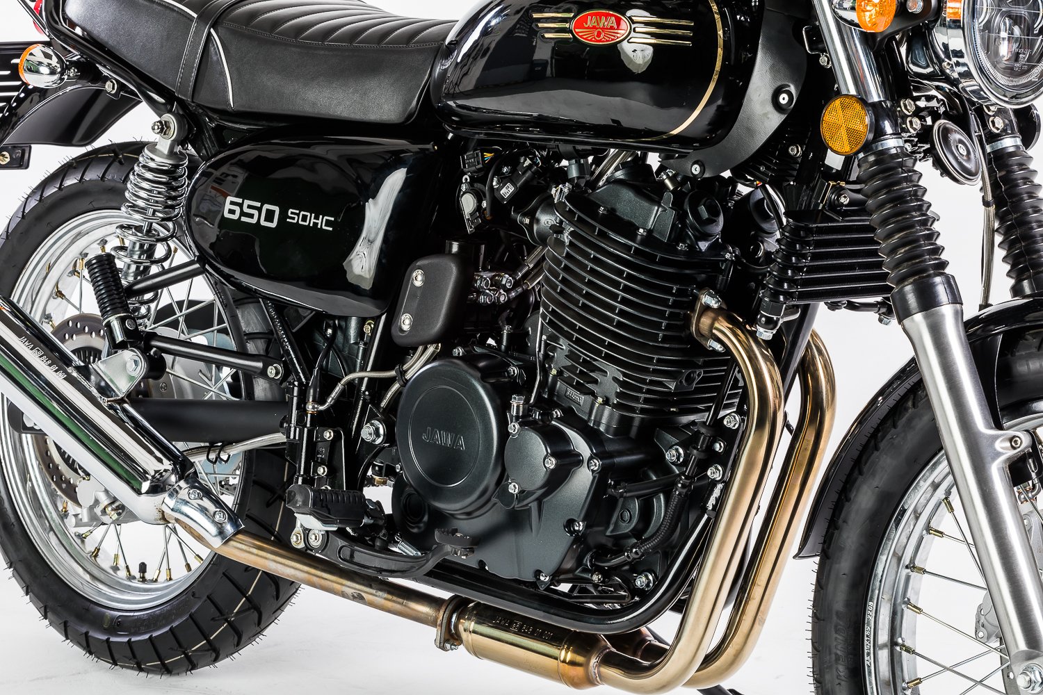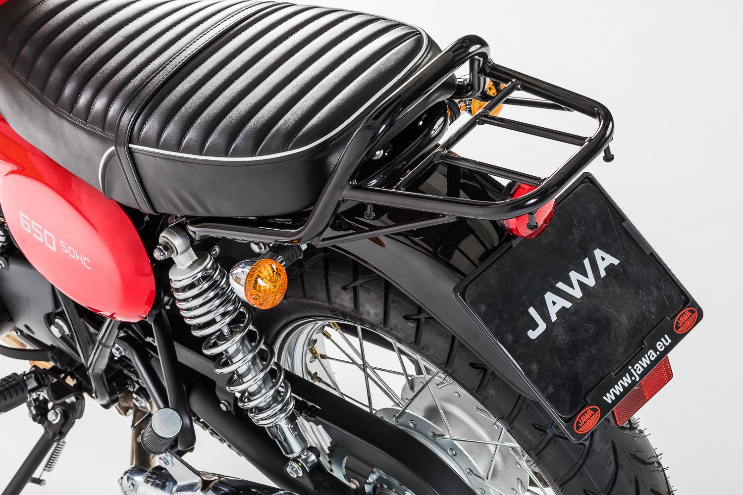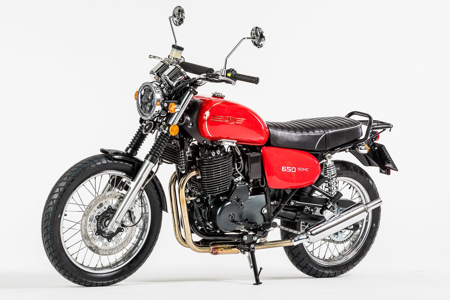 Similar to the JAWA 350 OHC series, the new model features a more powerful engine and brakes as well as strengthened frame. Both models, however, continue the traditional design of the JAWA motorcycles from the 1970s and thus proudly claim the legacy of the traditional JAWA motorcycle brand. The motorcycle is again built primarily from steel components, as has been the case throughout the history of our brand. Thanks to accessories such as drop guards or luggage racks, the JAWA 650 OHC can become not only your agile means of transport, but also a reliable partner for longer journeys.