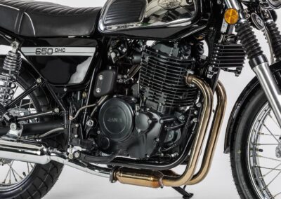 Now, the new, state-of-the-art JAWA 650 OHC and JAWA 650 OHC Sport models are „on the scene“, respecting both the simplicity of design demanded of retro-style motorcycles and the modern technical capabilities for comfortable use of the machine by its owner. Both models are equipped with a four-stroke single-cylinder engine, where you will greatly appreciate the level of torque that will give you a very comfortable use of power and engine flexibility. The motorcycles are cooled by air and oil, because simple solutions are the best. The five-speed gearbox is precise and pleasant to use. Engine boosting is provided by the proven Delphi injection system (already used by the JAWA 350 OHC series). The motorcycles are equipped with ABS disc brakes, which are significantly stronger than those used in the genetically similar JAWA 350 OHC motorcycles. This is mainly due to the higher weight, but also the top speed of the motorcycle, which is around 150 kph.